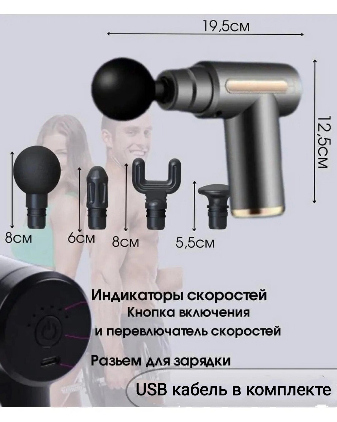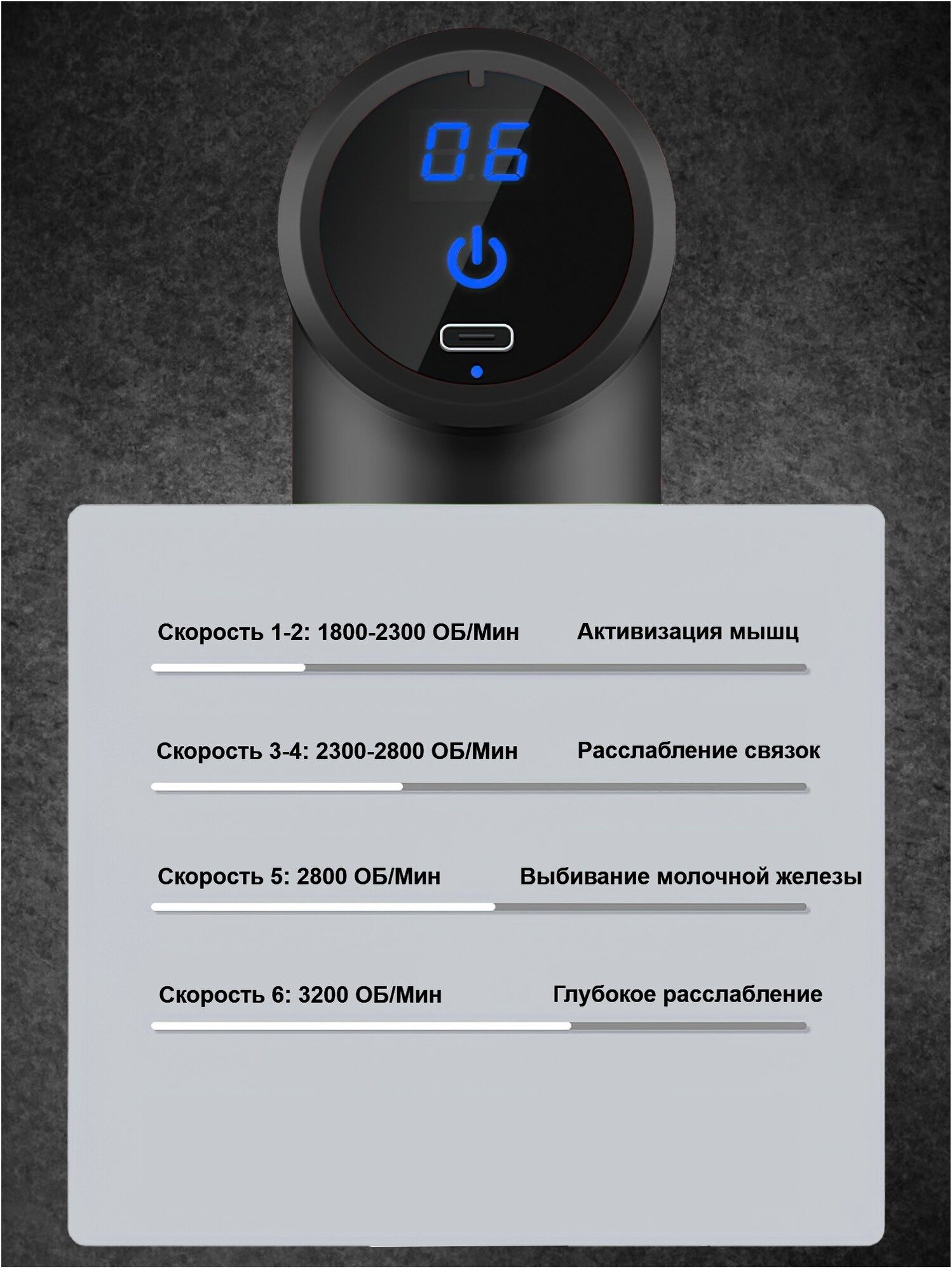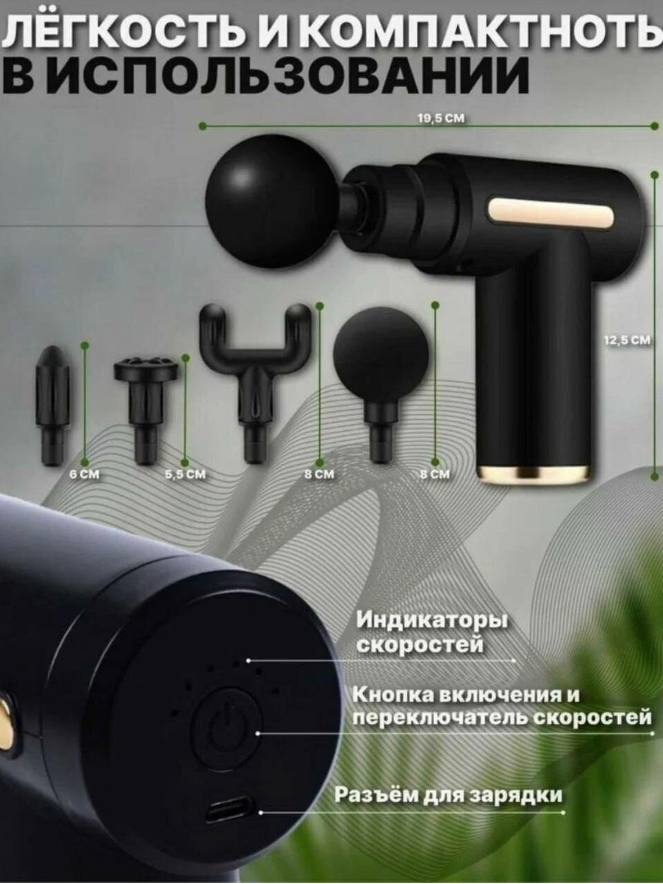 Перкуссионный массажер для тела электрический VIRG Mini Massage Gun, черный, 1 уп. интересное: