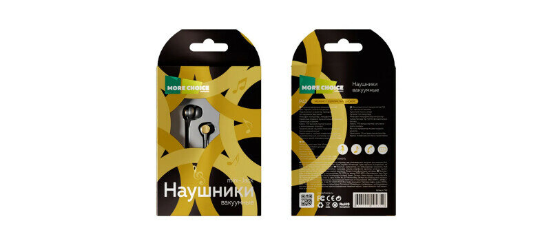 Наушники MORE CHOICE P42 проводные, вакуумные, 1,1м, черный/золотой