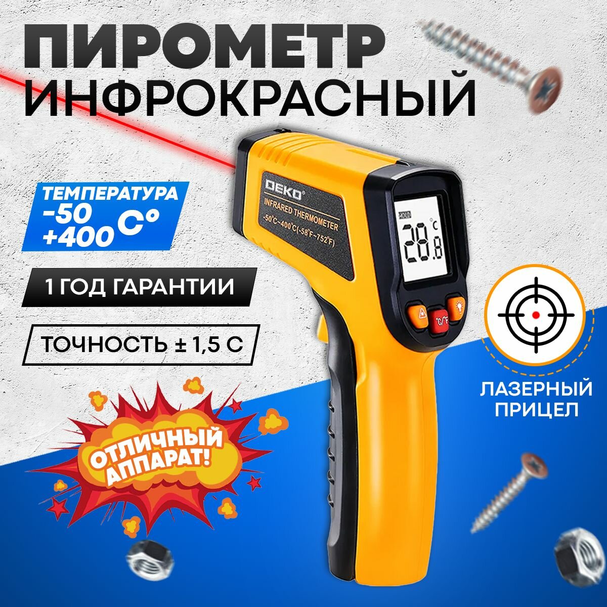 Пирометр инфракрасный CWQ01 DEKO, 065-0208 интересное: