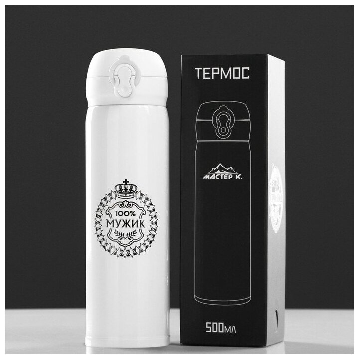 Термос, серия: Топ, "Мастер К. 100% Мужик" 420 мл, сохраняет тепло 8 ч, 7 х 26 см интересное:
