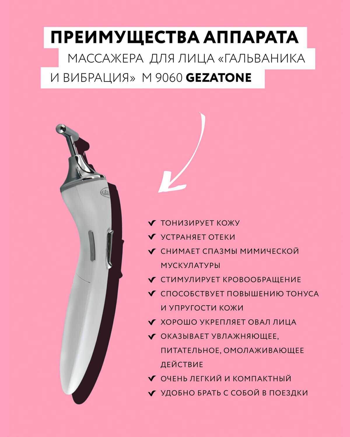Gezatone Массажер M 9060 для лица гальваника и вибрация, 1 шт