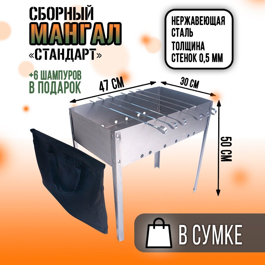 Мангал складной "Стандарт" 500*300, 6 шампуров, сталь, в сумке / для дачи, для пикника, туристический интересное: