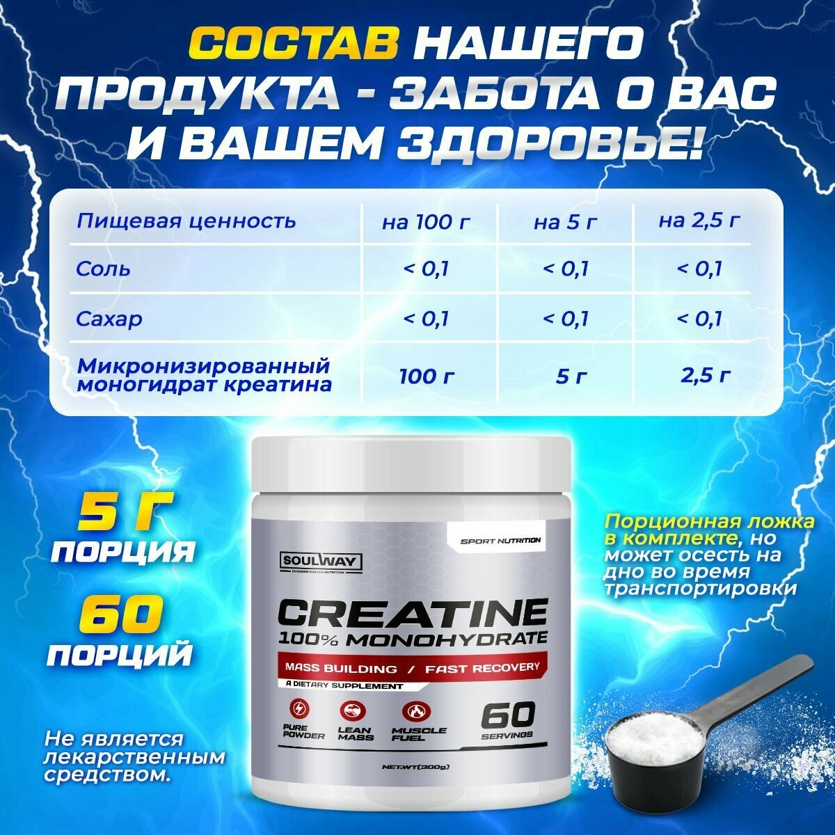 | Состав | Креатин моногидрат |