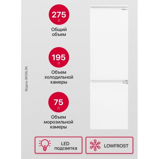 Встраиваемый двухкамерный холодильник Hansa BK306.0N