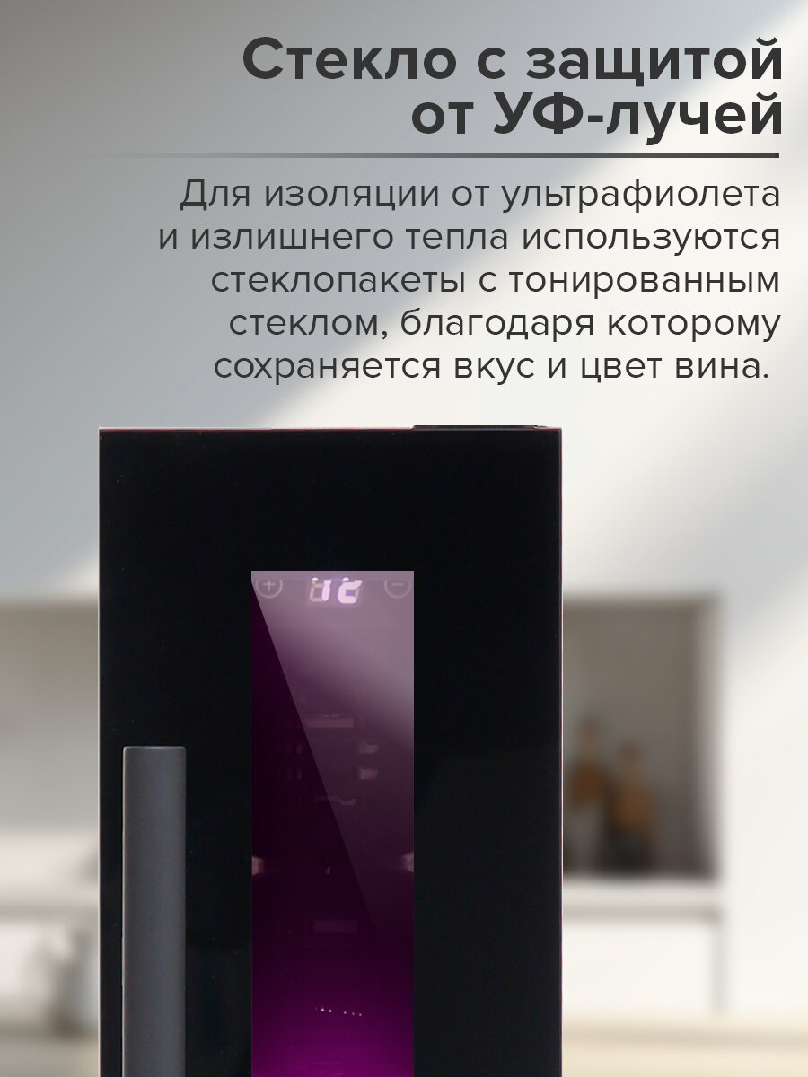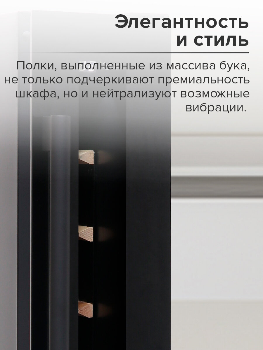 | Отзыв: | Шкаф хороший, небольшой, на 9 бутылок по 750 мл. Полки из массива бука гасят вибрации от компрессора, которых итак немного, так как уровень шума у данной модели низкий ( всего 41 Дб). От УФ стекло двери защищает, есть специальное нанесение. Отличный выбор! |