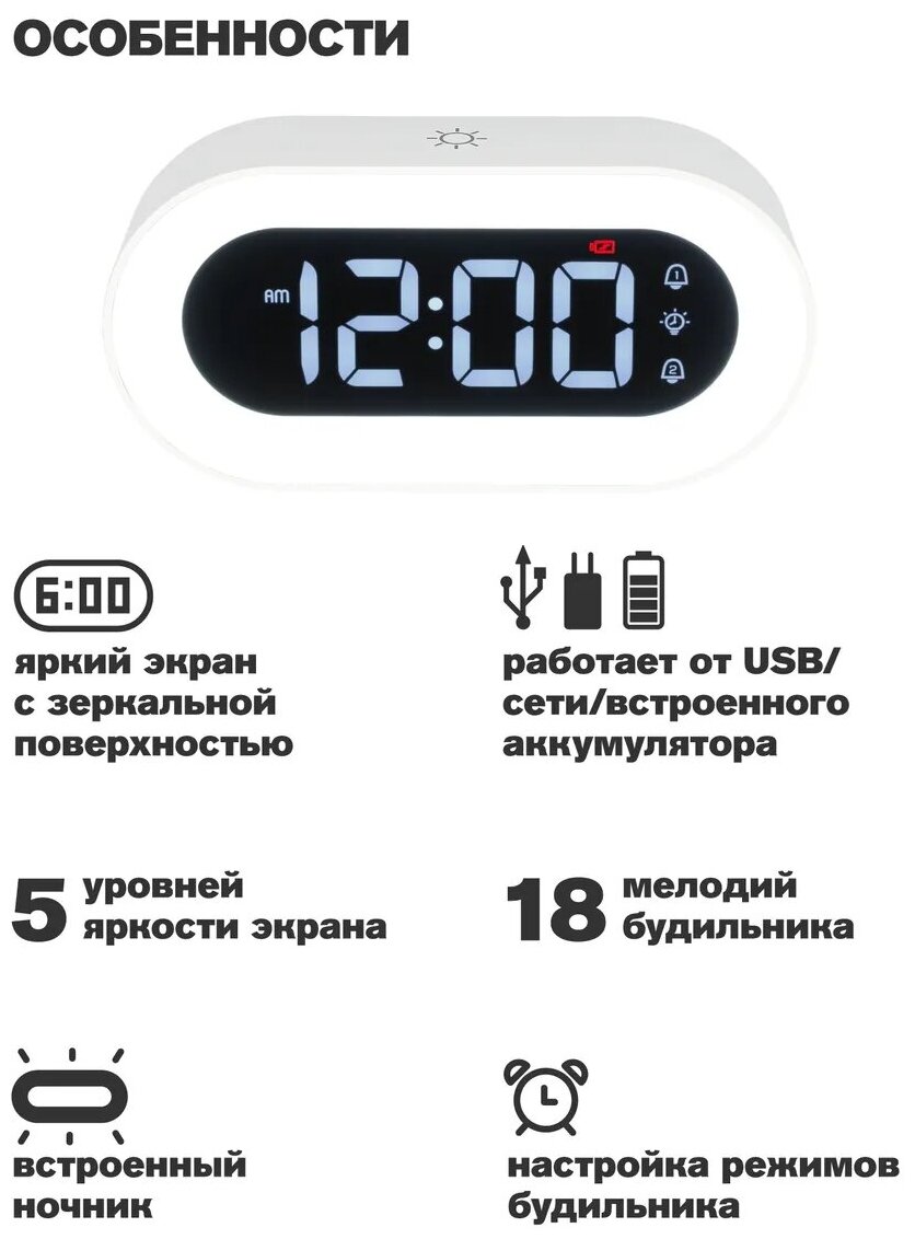 ARTSTYLE CL-88WW Часы электронные, CL-88WW, , белые, со встр. аккум., ночником и будильником интересное: