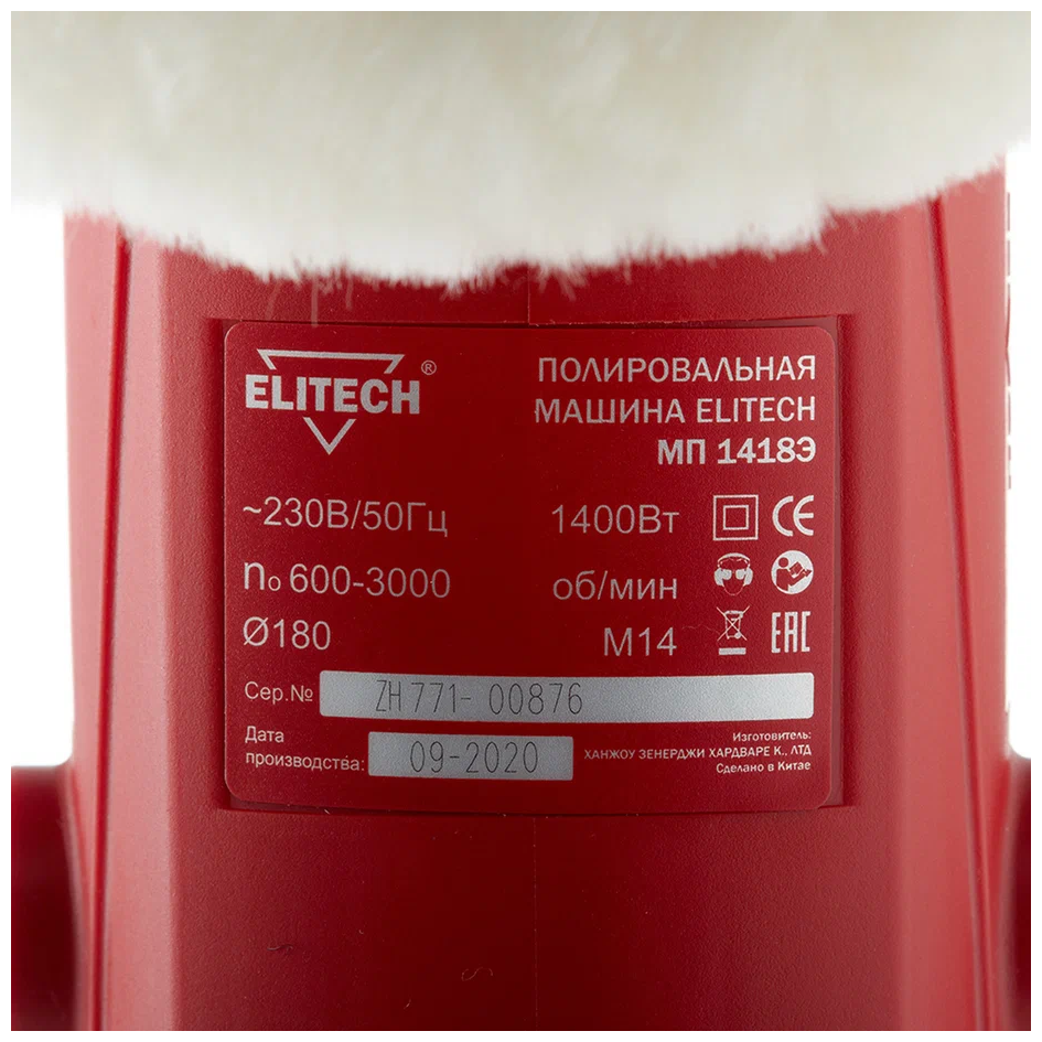 Купить ELITECH МП 1418Э Шлифмашина полировальная (1400Вт,M14,ф180мм,600-3000об\м,3.7кг)