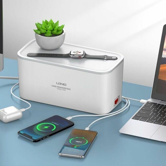 | Плюсы: | наконец то удалось убрать с глаз долой все розетки и зарядки. аккуратная коробочка вместила весь этот хлам) |