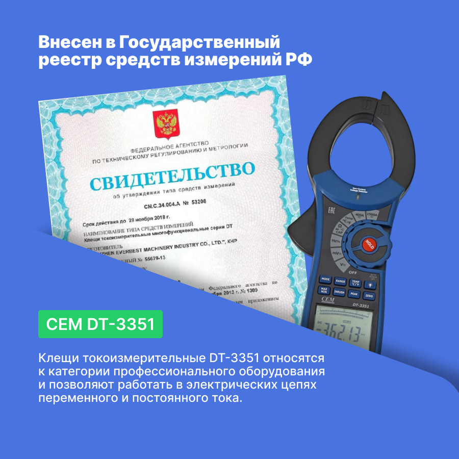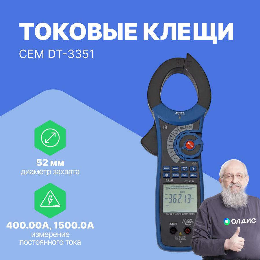 Профессиональные токовые токоизмерительные клещи для измерения постоянного, переменного тока СЕМ DT-3351