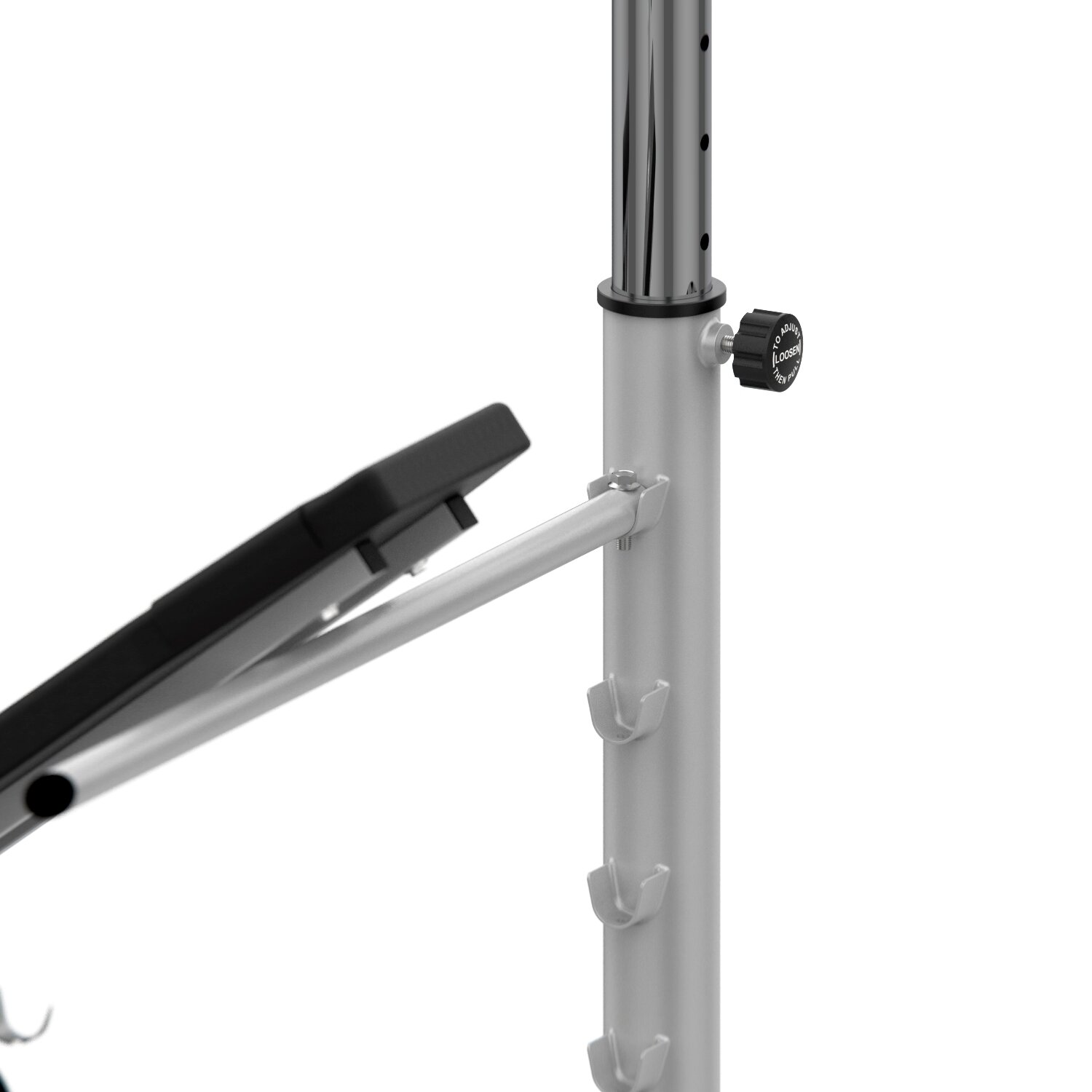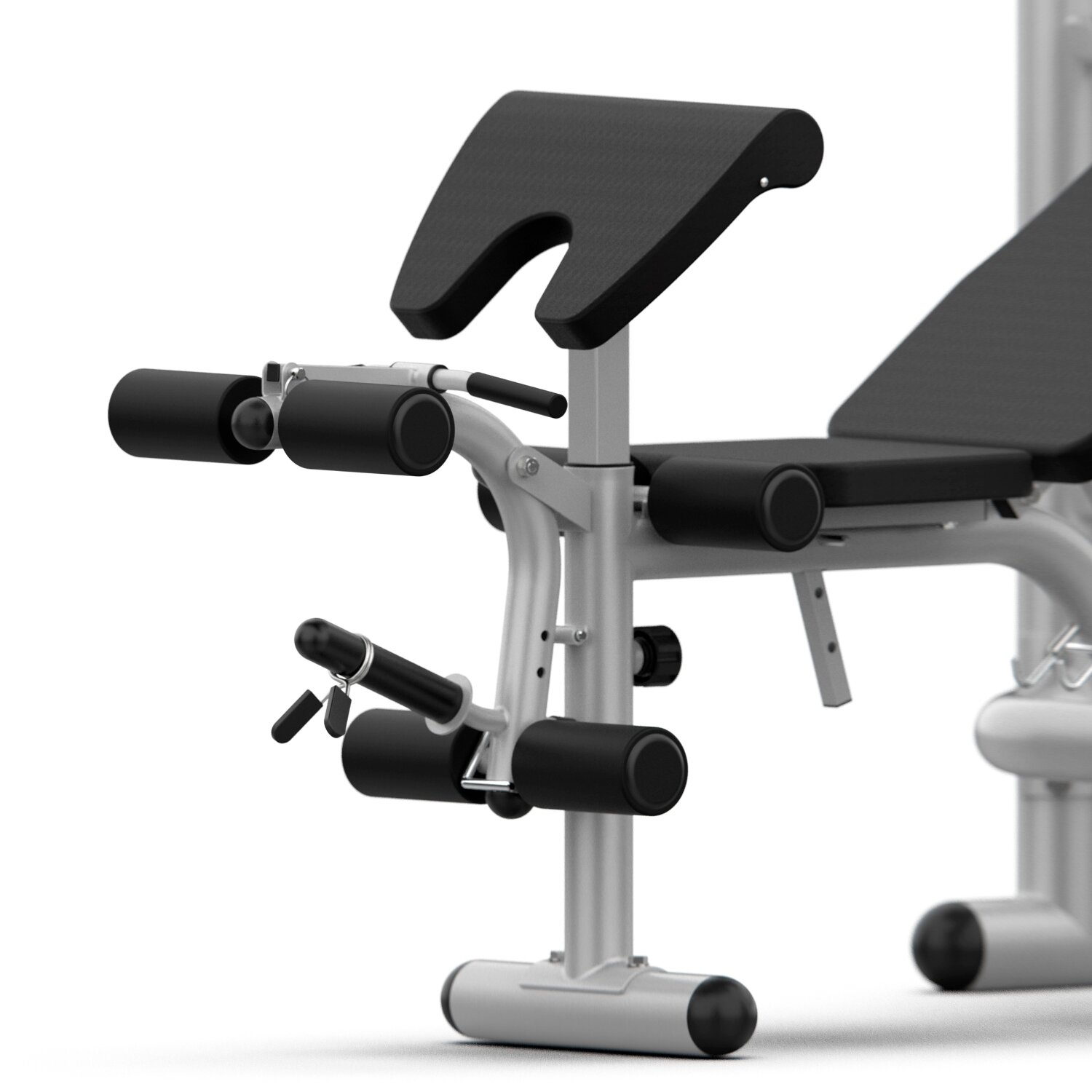| Плюсы: | Регулировка спинки по наклону. Скамья Скотта (хоть и узкая). Стойки под штангу. |