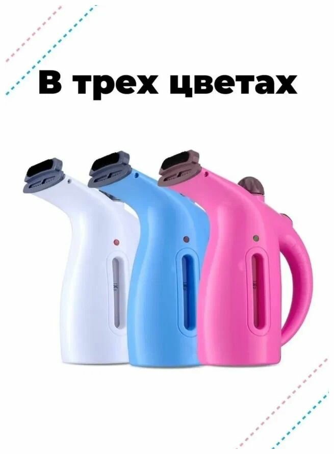 Ручной отпариватель для одежды / Вертикальный отпариватель HS-800 2 режима, 2 насадки, 350 мл, в трех цветах: розовый, голубой, белый