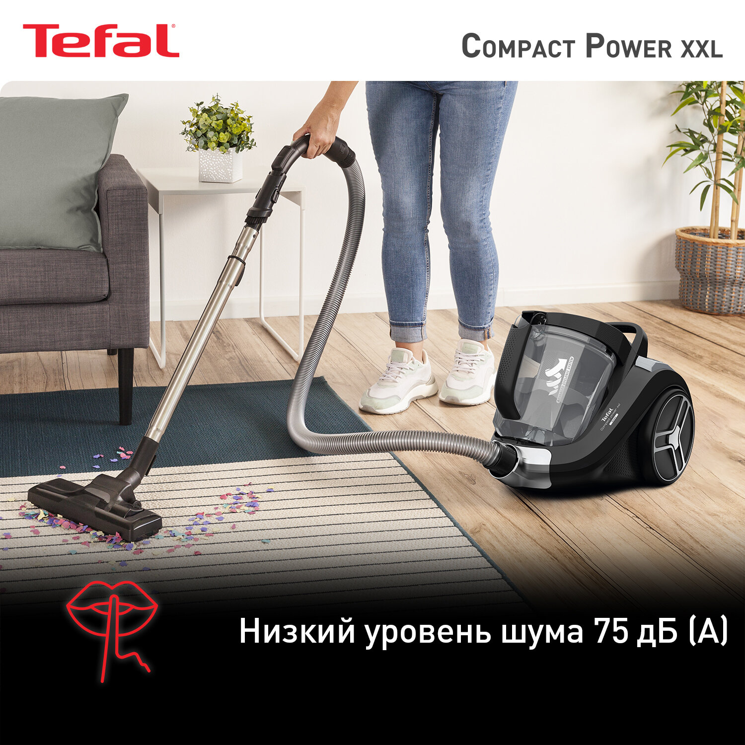 Отличный,бесшумный ,?мы очень рады покупке,хорошая мощность всасывания,длинный провод,легко мыть .Перепробовали ряд других фирм,но Tefal просто супер.