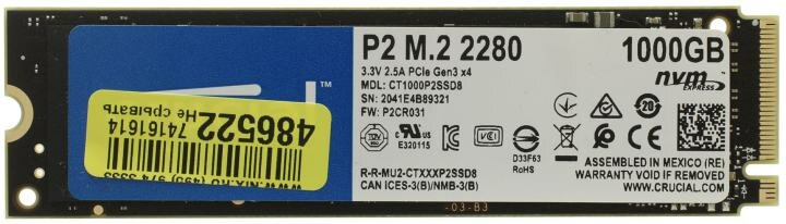 Твердотельный накопитель Crucial P2 SSD 1000GB, M.2 (2280), PCIe Gen 3.0 CT1000P2SSD8