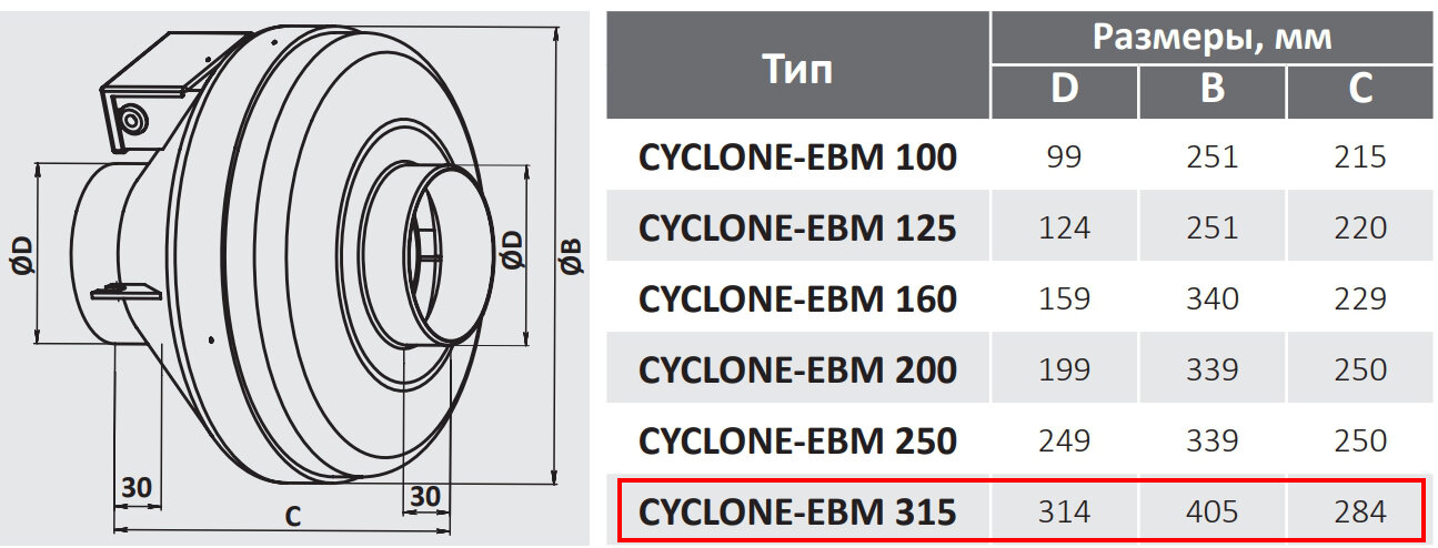 CYCLONE-EBM 315 ЭРА (ERA) Вентилятор центробежный канальный приточно-вытяжной