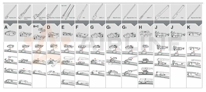 Купить AIRLINE AWBBK410 Щетка стеклоочистителя 410 мм (16) бескаркасная, 10 адаптеров"