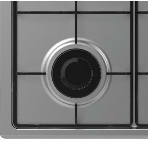 Газовая варочная поверхность 60 см. Цвет: Нерж сталь. Цвет ручек: серебро. Газ-контроль. Автоматический электроподжиг. 4 конфорки: быстрая, 2-е полубыстрые и вспомогательная. 2 эмалированных решетки. Цельноштампованная поверхность. Комплект форсунорк для