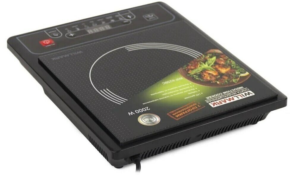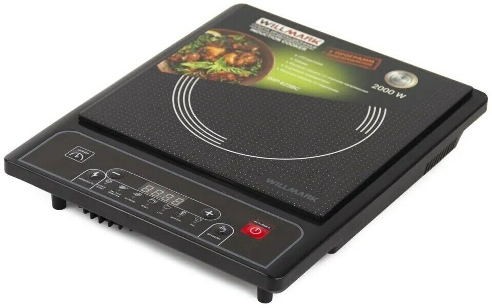 Плитка индукционная WILLMARK WIP-625BC, 1 конф. черная, 2000 Вт, 8 уровней темп. 7 программ