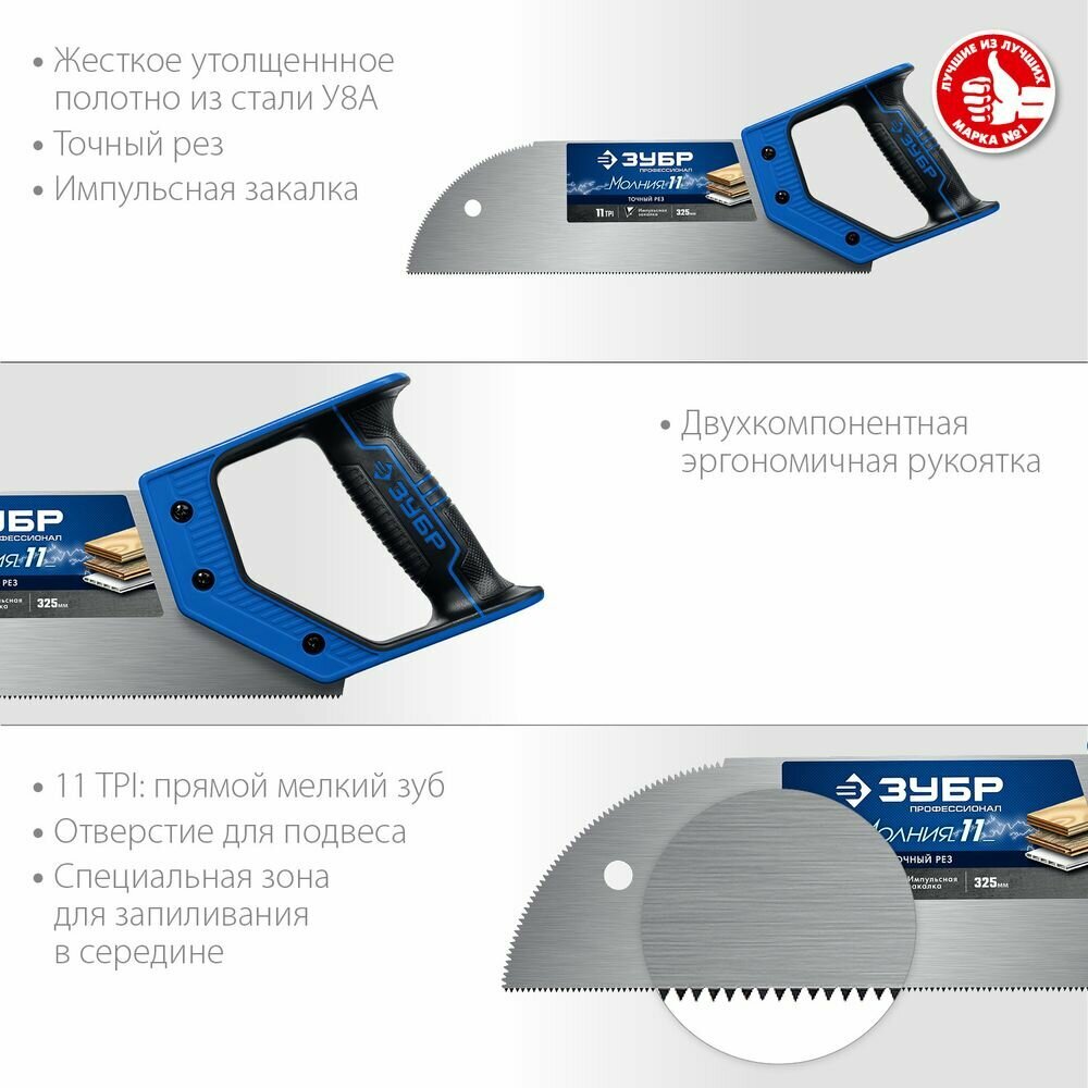Зубр Ножовка для фанеры ЗУБР Молния 11 325 мм 11 TPI 15158-30 интересное:
