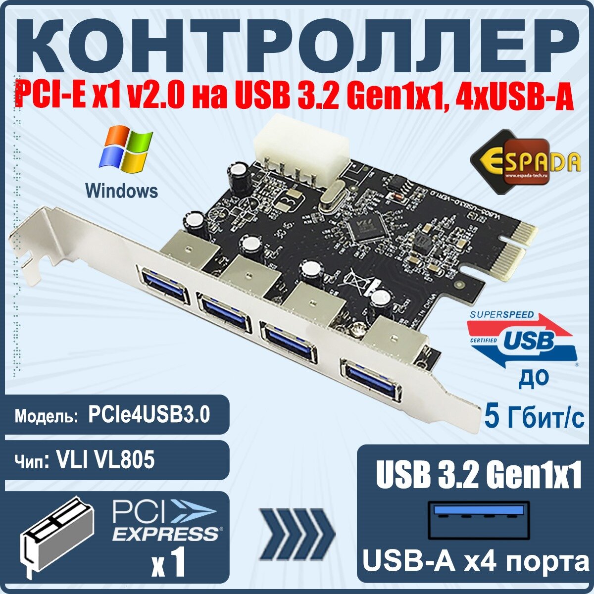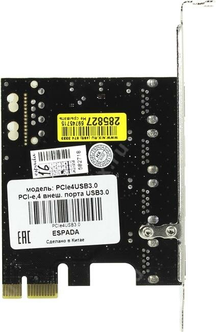 Контроллер PCI-E, USB 3.0 4 внеш. порта, модель PCIe4USB3.0, Espada интересное: