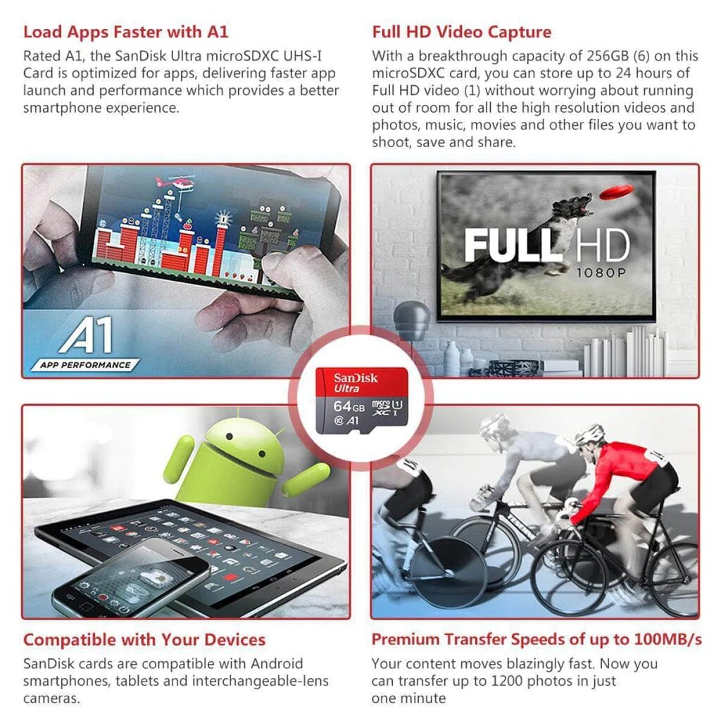 Карта памяти SanDisk Ultra Micro SDXC, A1, 64 Гб