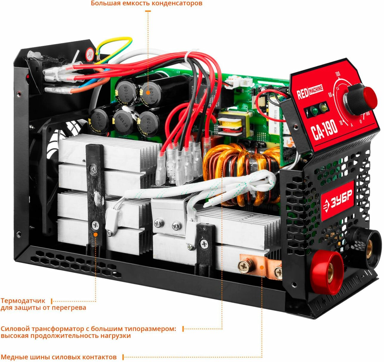 ЗУБР ММА, 190 А, компакт, сварочный аппарат инверторный, макс. электрод Ø 4.0 мм (СА-190К)