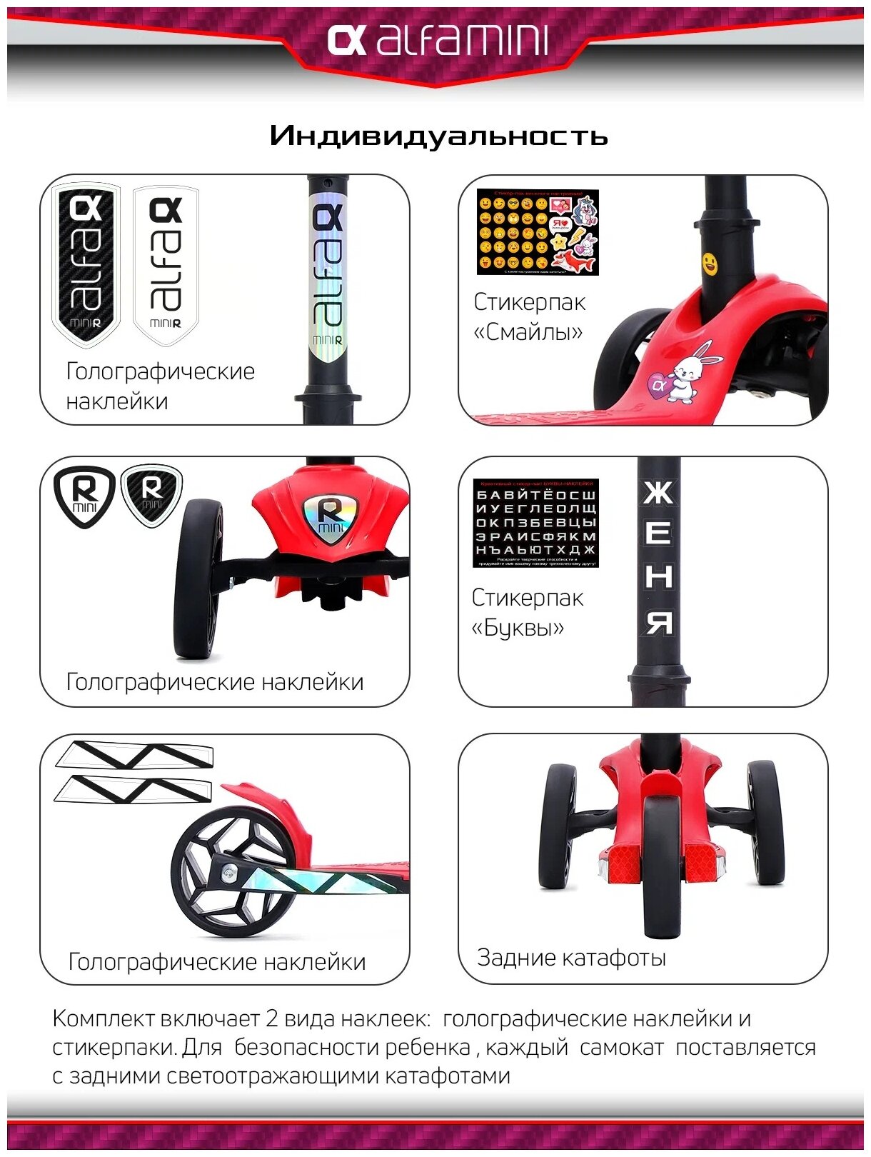 Самокат детский трехколесный с наклейками Alfa Mini R от Buggy Boom