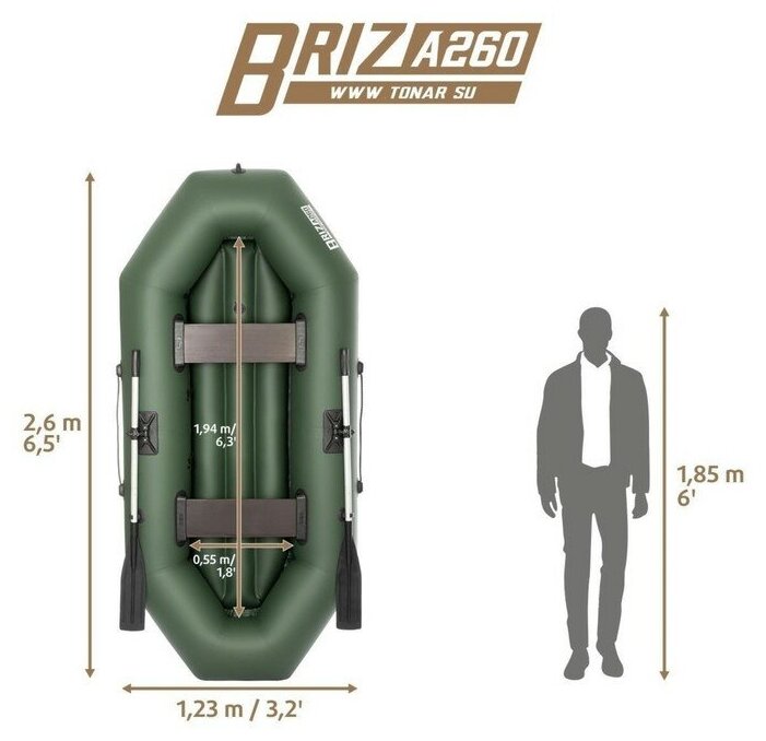 Лодка Бриз А260 (надувное дно, зеленый) Тонар интересное: