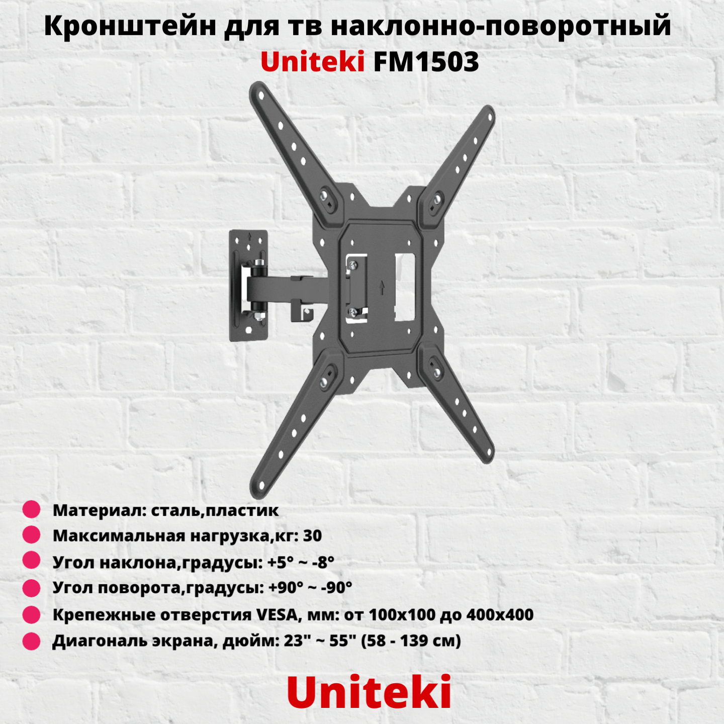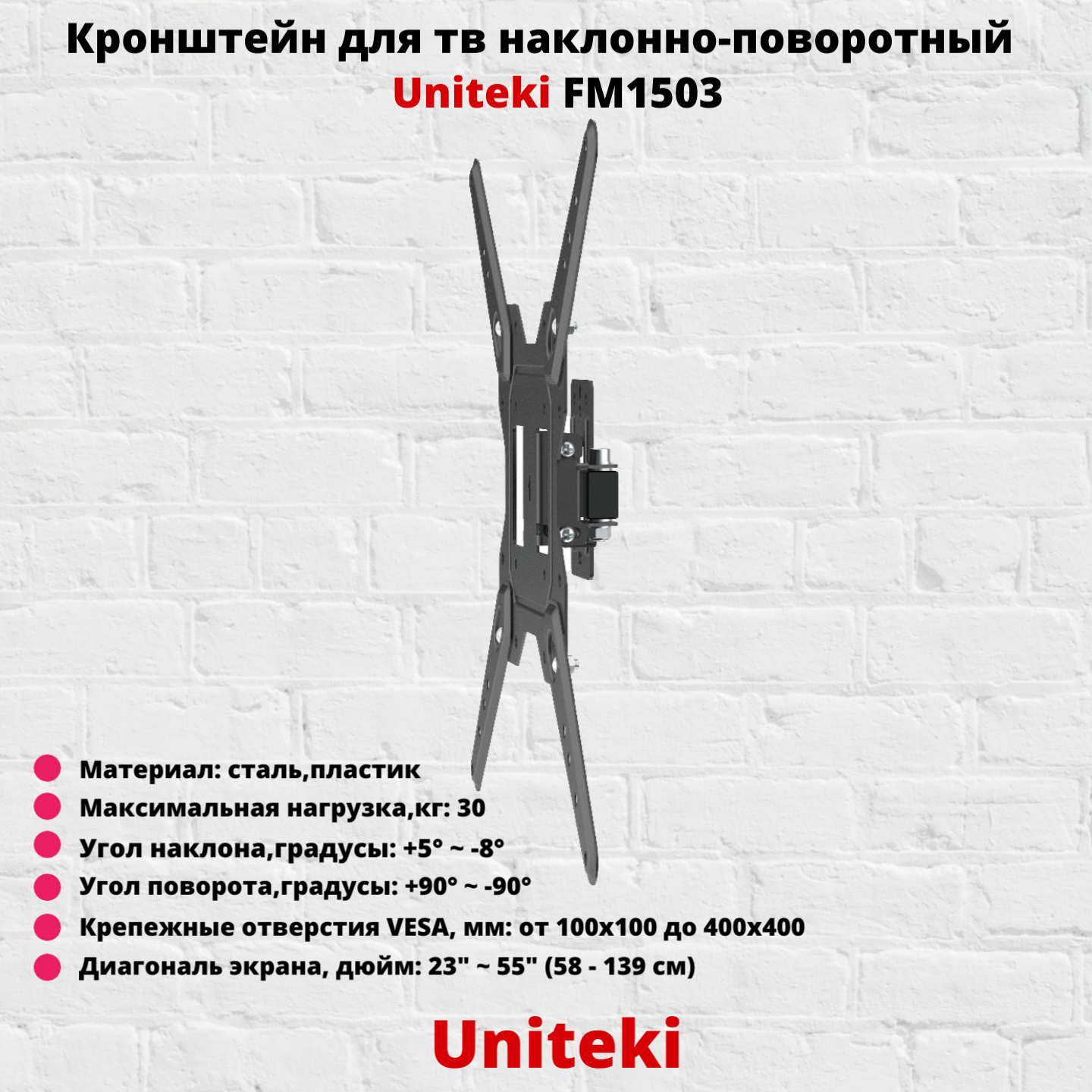 Кронштейн для телевизора на стену наклонно-поворотный с диагональю 23"-55" UniTeki FM1503,черный