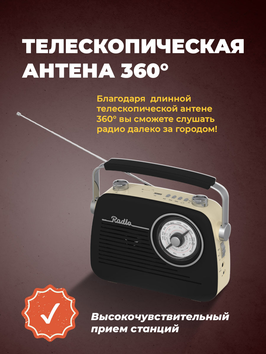 | Плюсы: | Ретро стиль, хороший прием, чистый звук, есть пульт для управления записями с флэшки и карты памяти. |