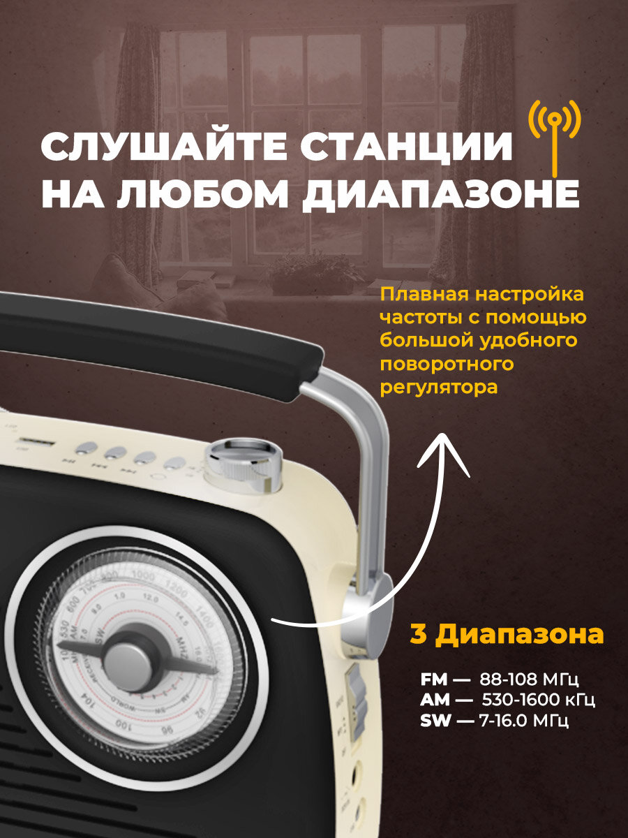СохранитьРадиоприемник Ritmix RPR-075 Beige Black, Bluetooth, usb, microSD, FM, AM, SW, АС-220 В, 450 мА, DC 3 В (2*D) интересное:
