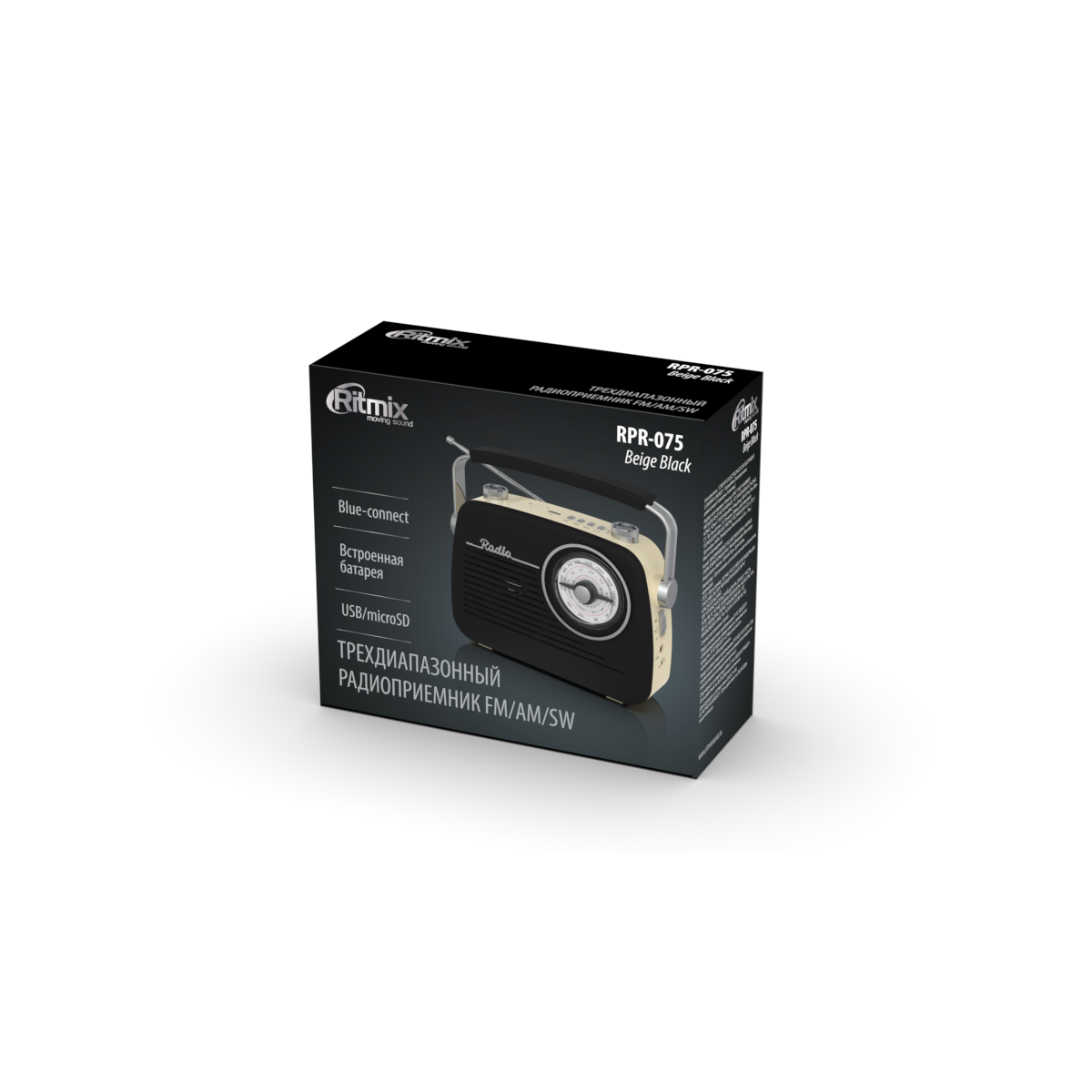 Купить Радиоприемник Ritmix RPR-075 Beige Black, Bluetooth, usb, microSD, FM, AM, SW, АС-220 В, 450 мА, DC 3 В (2*D)