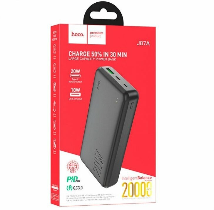 Портативный аккумулятор Hoco J87a 20000mAh, 3A, черный (61033) 6931474761033 .