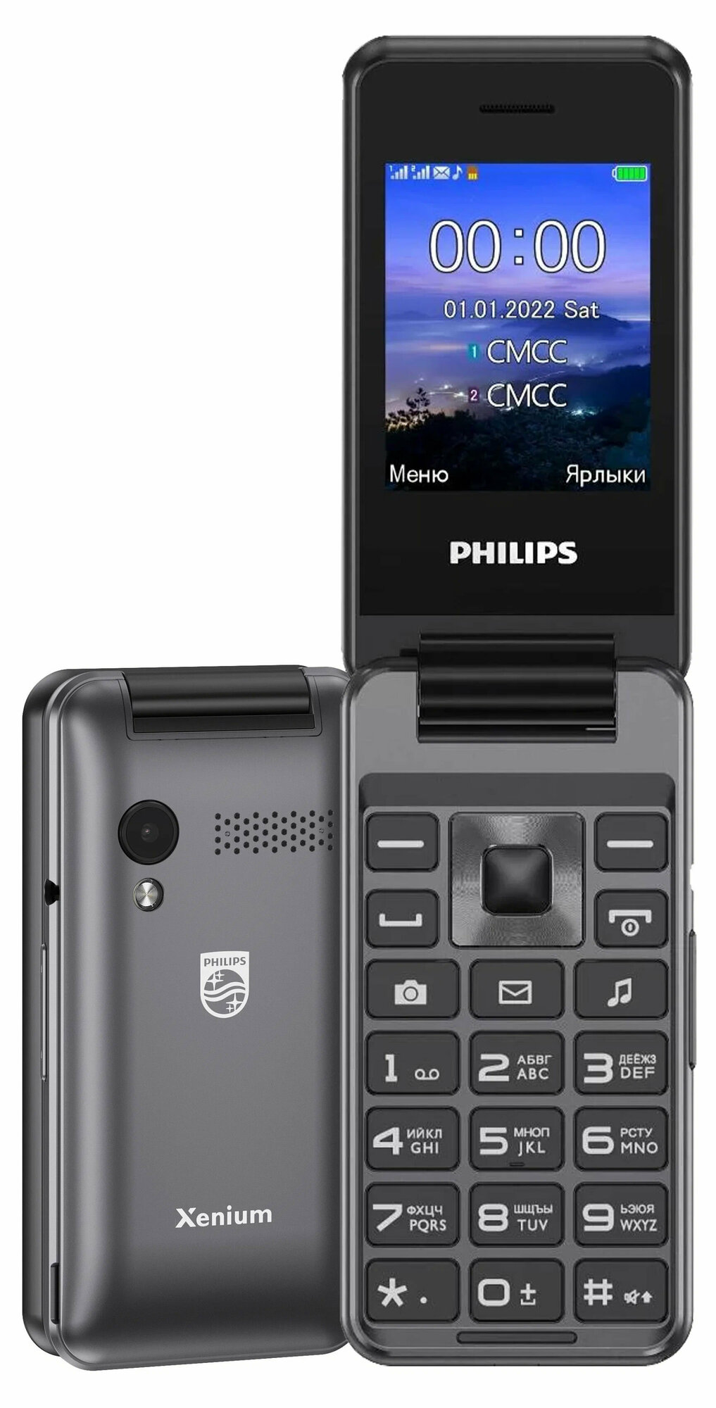 Сотовый телефон Philips Xenium E2601 Dark gray (2sim/2.4"/240*320/32Mb/microSD/0.3Мп/Bt/1000мАч/раскладушка)