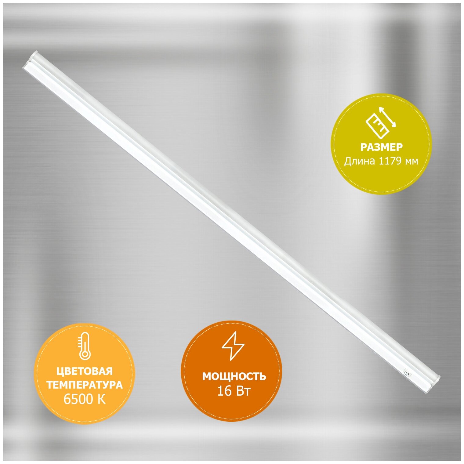 Светильник светодиодный Rexant 607-218 линейный T5-01 16 Вт 1280 Лм 6500 K IP20 1179 мм с выключателем и соединителем