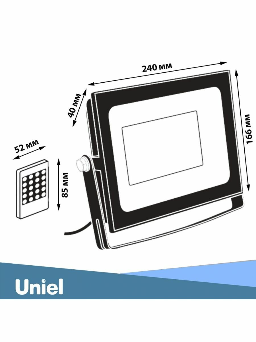 Прожектор светодиодный Uniel ULF-F60-50W/RGB, 50 Вт, свет: RGB