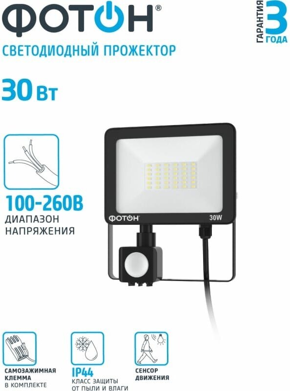 Фотон Прожектор светодиодный сетевой " Fl-30w6k65-pir 30W с датчиком движения 24540 . интересное: