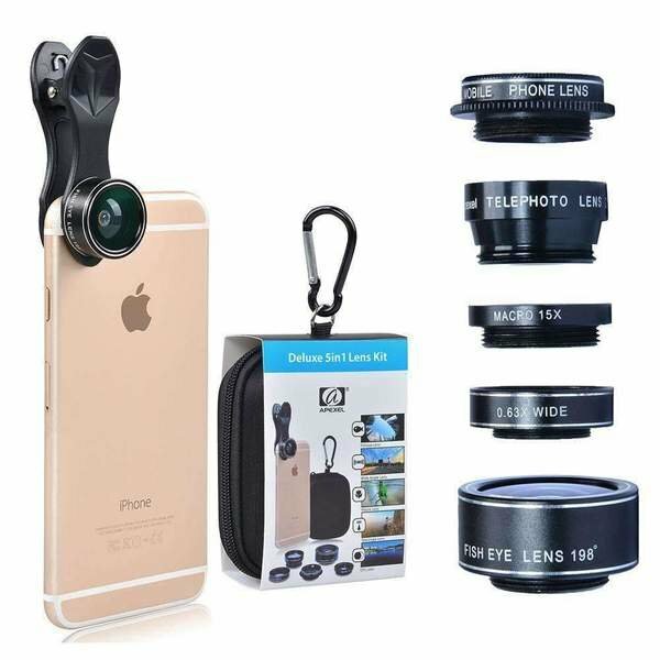 Комплект объективов Apexel 5-in-1 DG5H для смартфона APL-DG5H интересное: