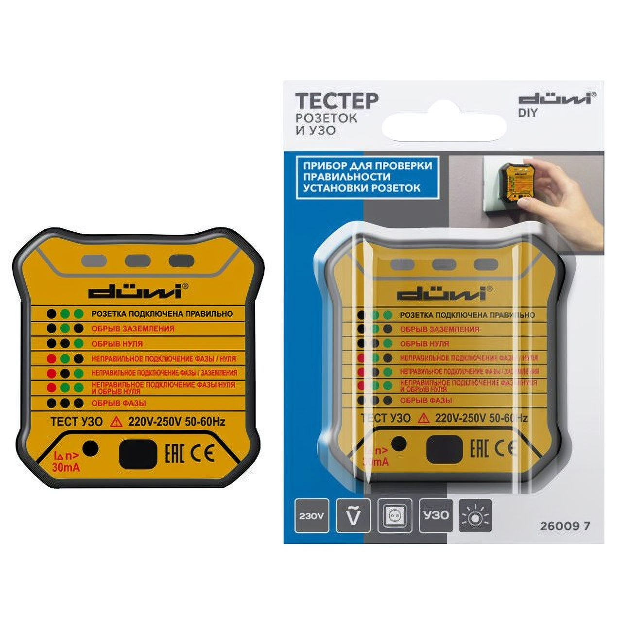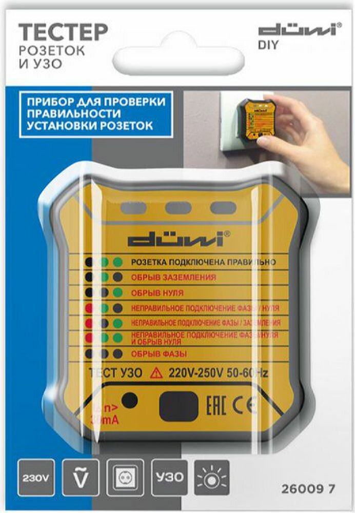 duwi Тестер розеток и УЗО M6860 Diy, 26009 7 .