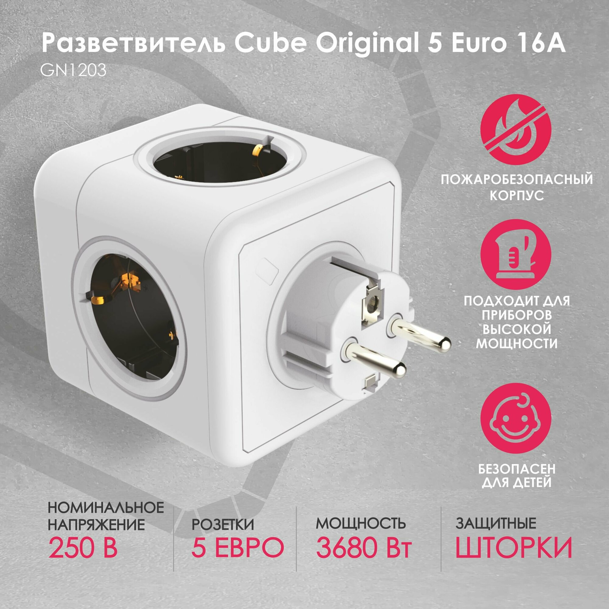 GN1203 Разветвитель Cube Original 5 Euro 16A RocketSocket, цвет белый-серый Ливолотач интересное: