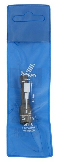 Бита с торцевой головкой тундра, сталь CrV, магнит, 6 х 45 мм