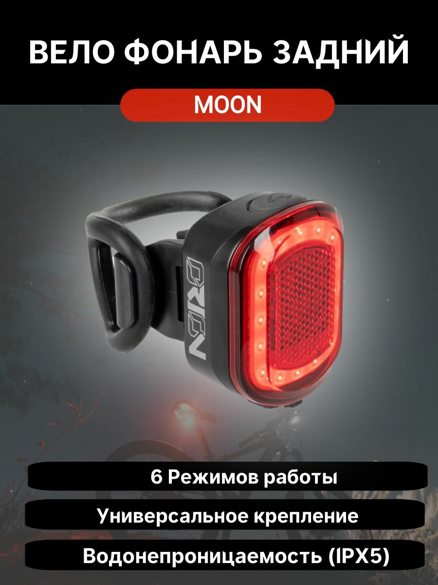 Купить Фонарь задний Moon Orion, 50 lm, USB, COB LED, 5 режимов, Li-Po аккумулятор, быстросъемное крепление