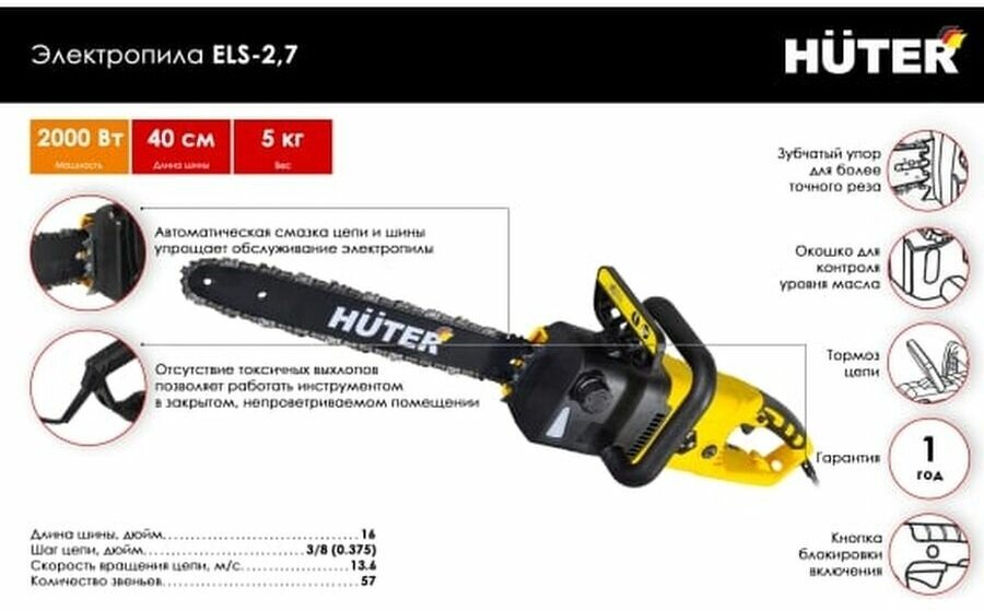 Электропила Huter ELS-2,7, 2000 Вт интересное: