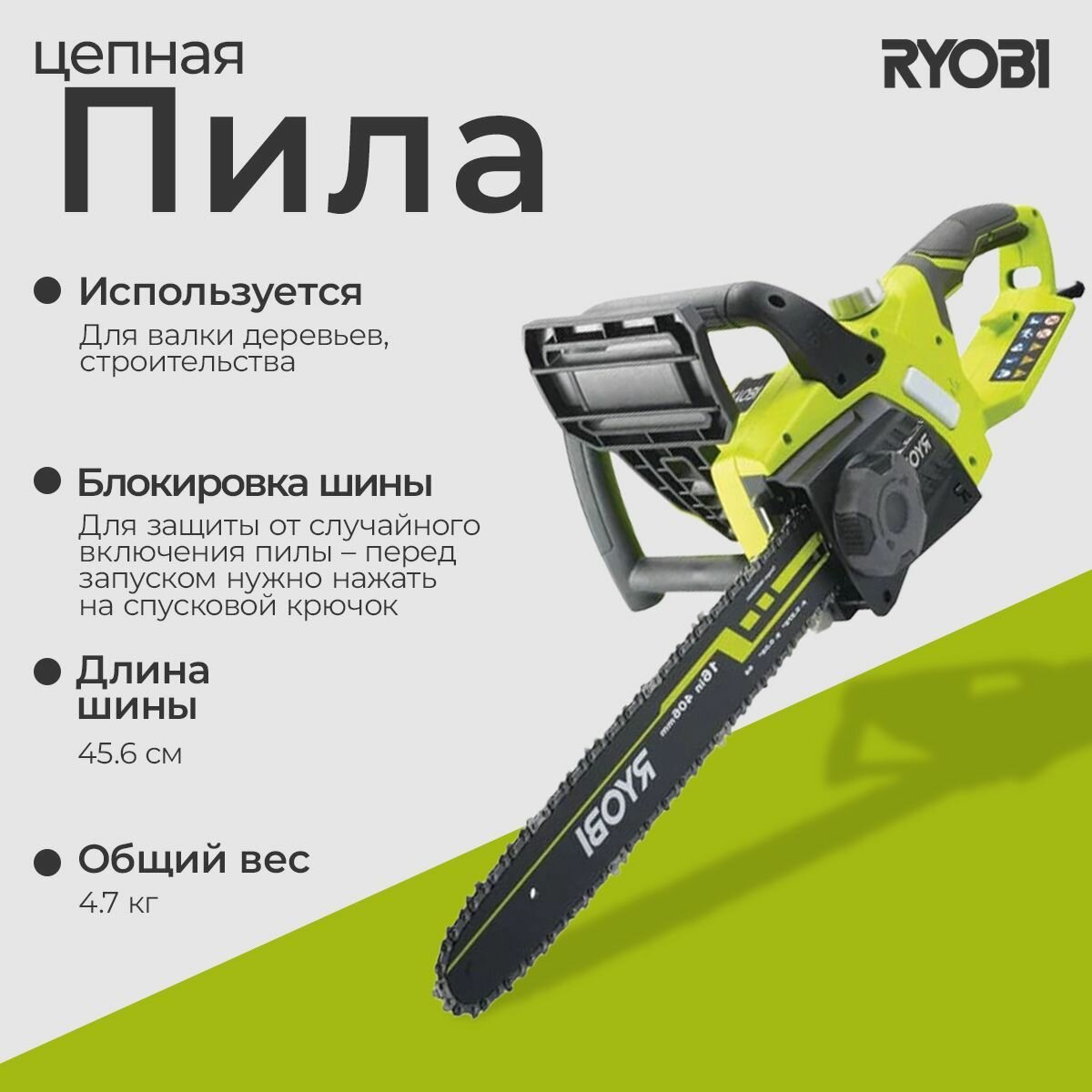 Пила цепная электрическая Ryobi RCS1935B интересное: