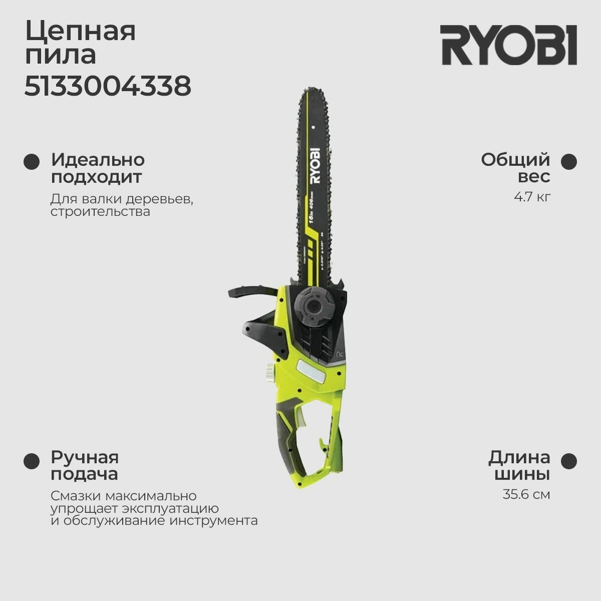 Ryobi Цепная пила Rcs1935b 5133004338 .