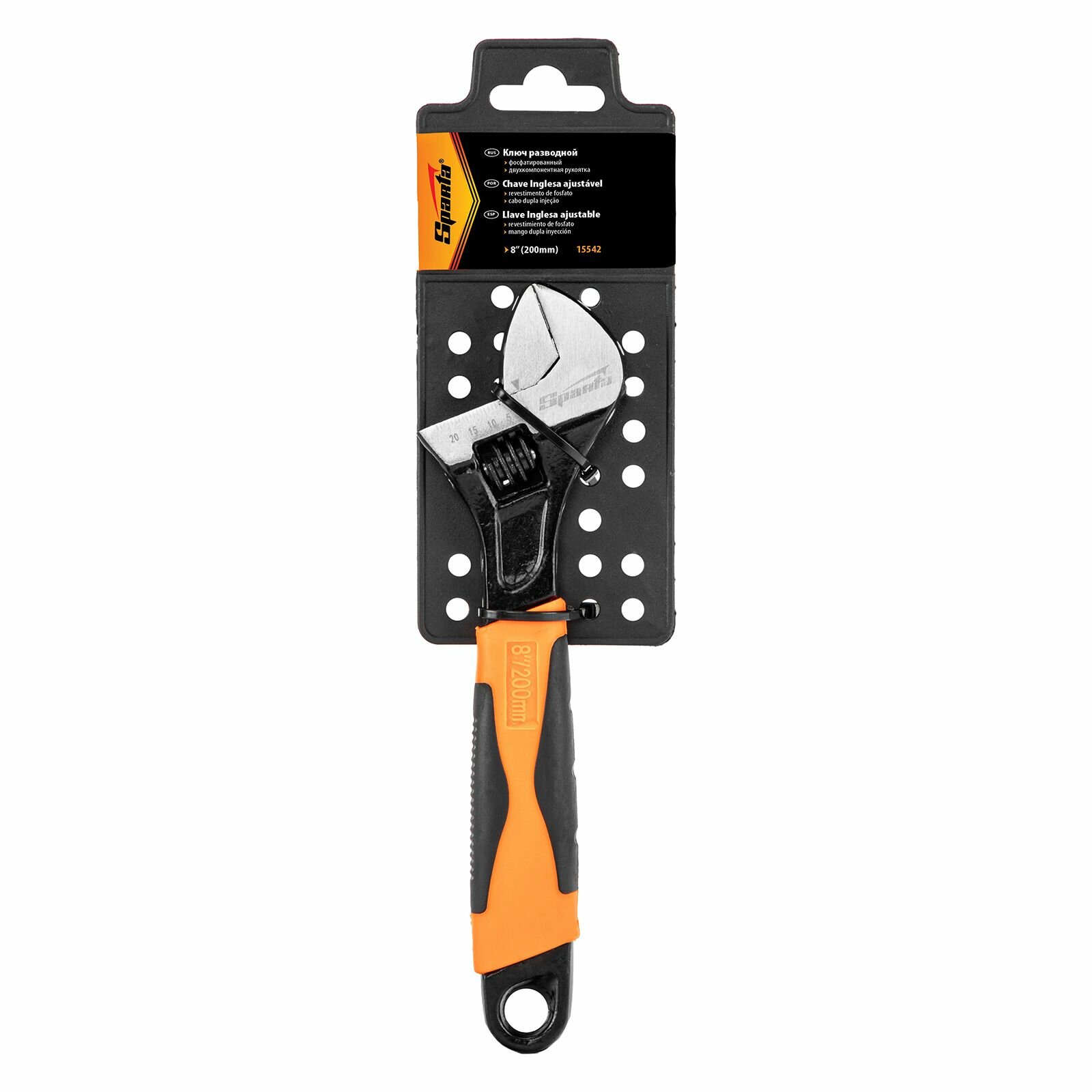 Ключ разводной, 200 мм, двухкомпонентная рукоятка, SPARTA 15542