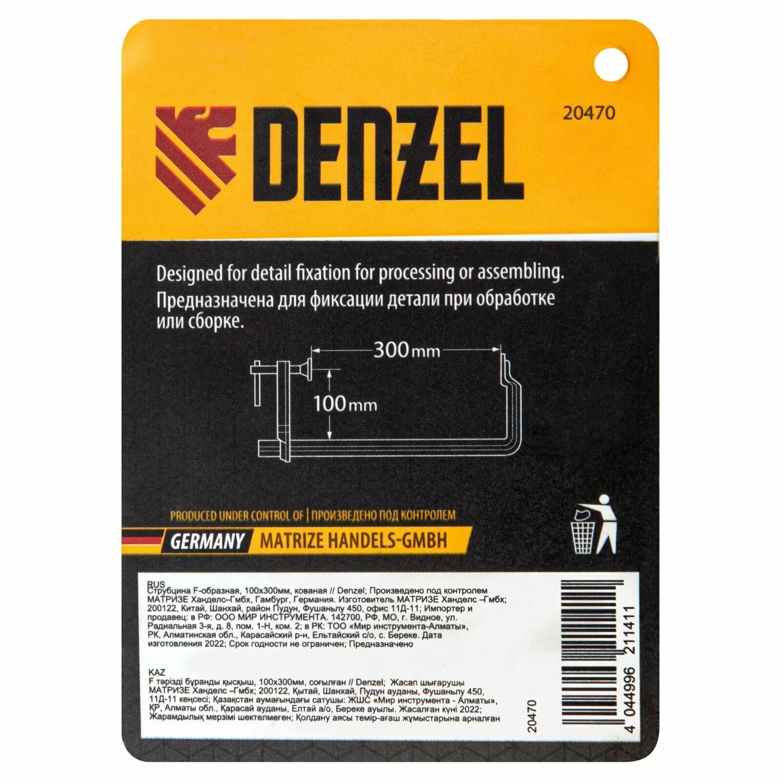 Denzel Струбцина F-образная, 100x300мм, кованая 20470 .