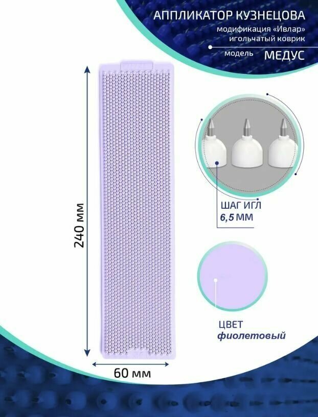 Аппликатор Кузнецова (модификация ивлар) "Медус" 240х60 мм, шаг 6.5, фиолетовый