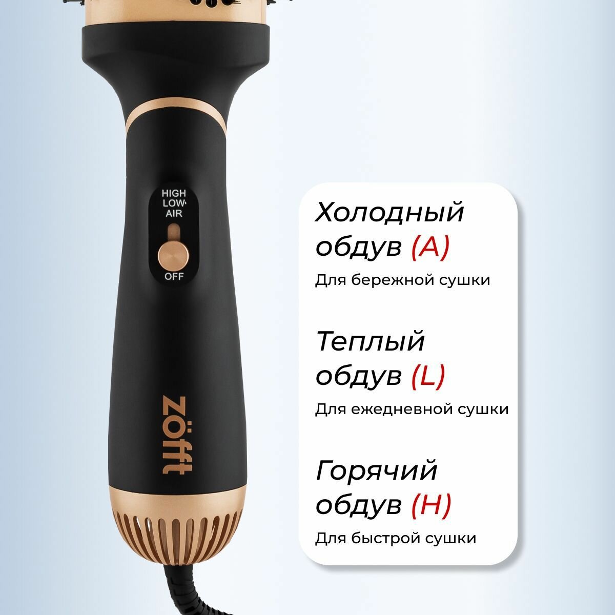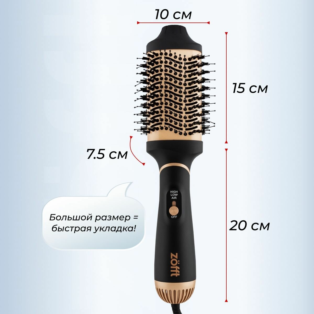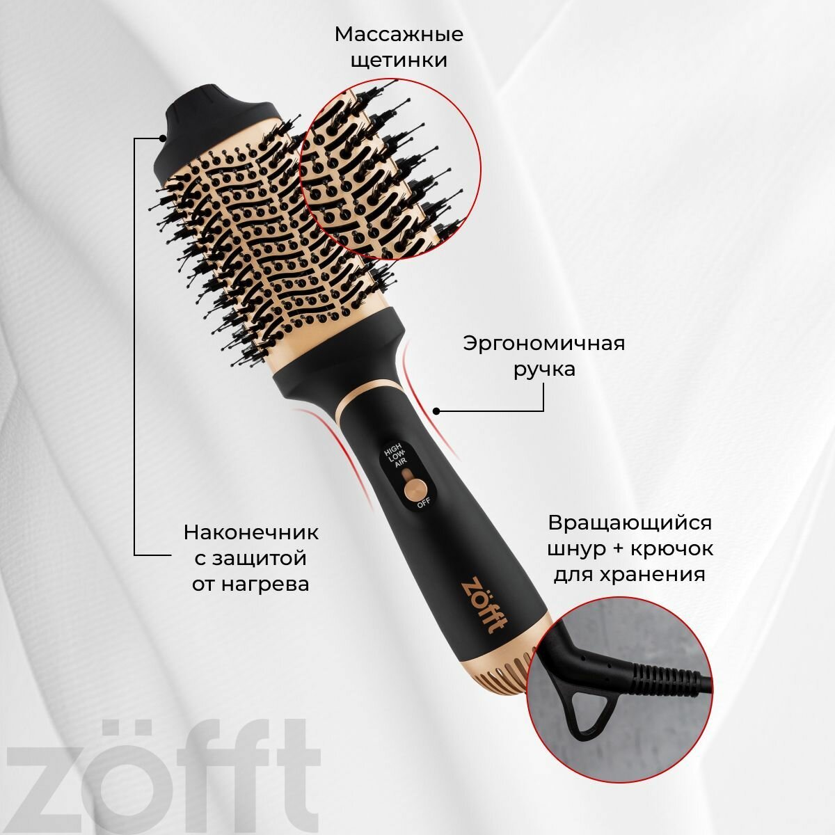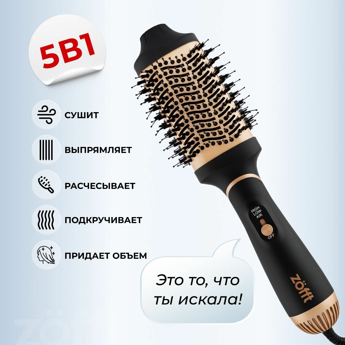 Купить Фен-щетка для волос Zofft с вращением шнура / Фен-расческа для укладки / Фен стайлер с ионизацией профессиональный / Мультистайлер, выпрямитель / черно-золотая