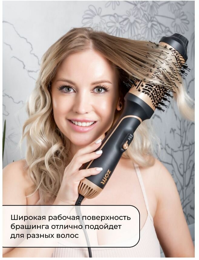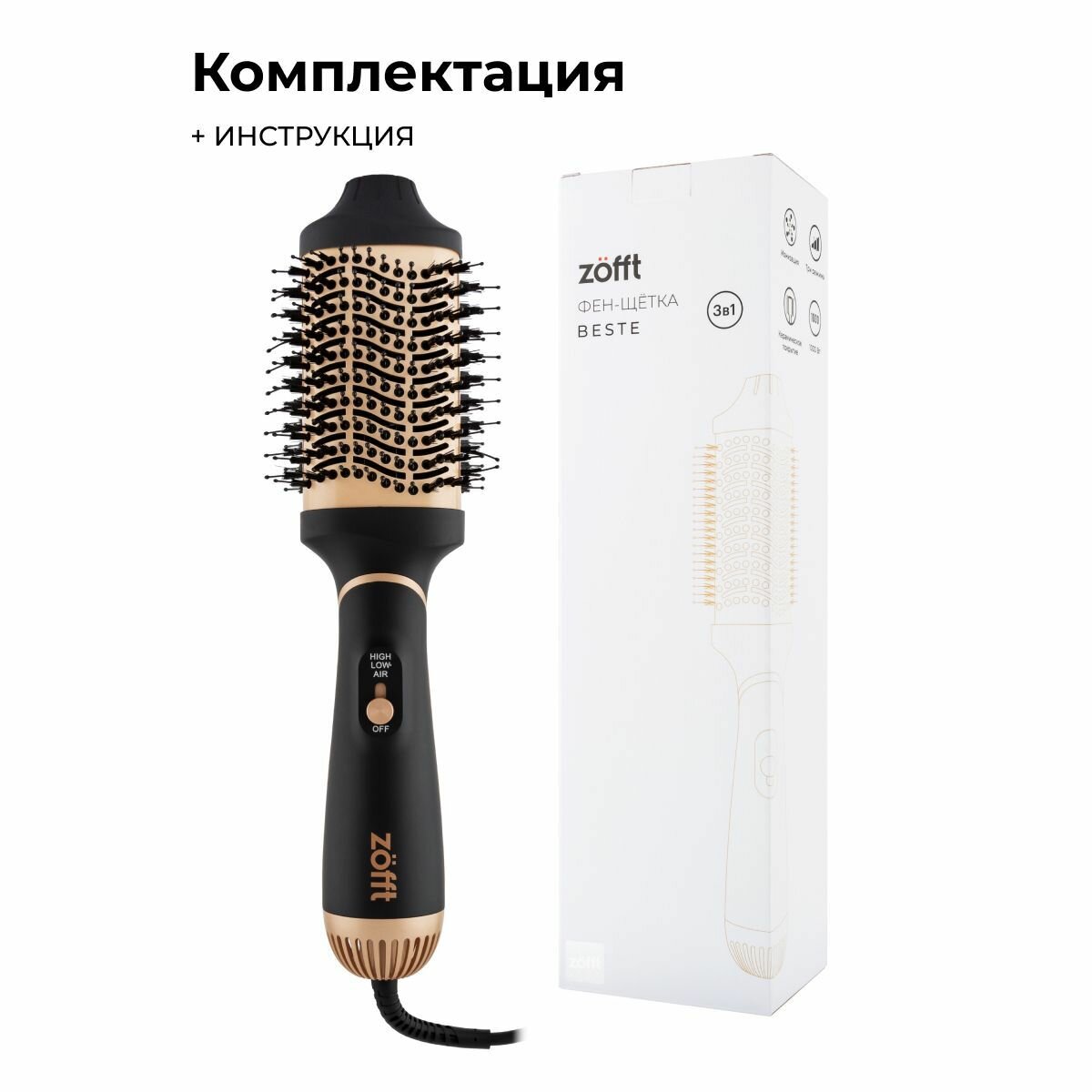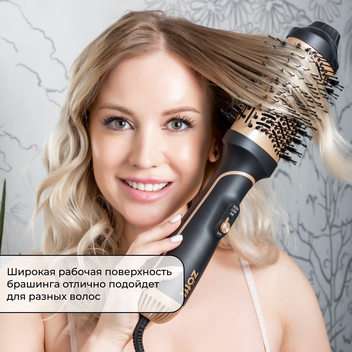 Фен-щетка для волос Zofft с вращением шнура / Фен-расческа для укладки / Фен стайлер с ионизацией профессиональный / Мультистайлер, выпрямитель / черно-золотая интересное: