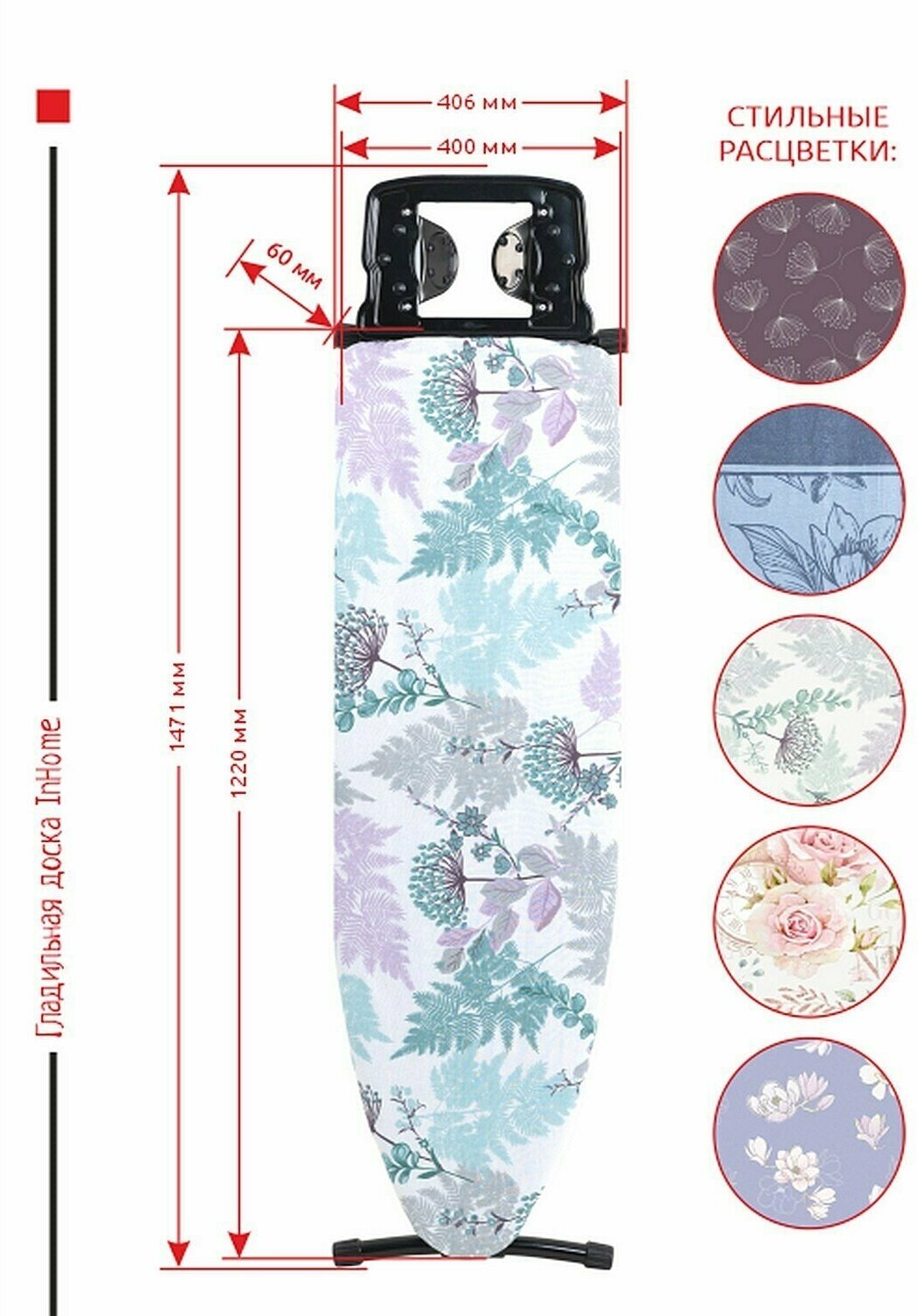 Гладильная доска InHome моноблок (1220х400мм) цветы на сером IN10M/1 .